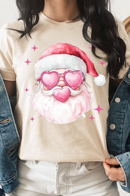 Pink Christmas Santa Graphic Tee.